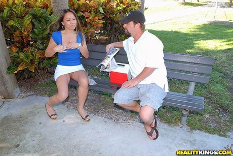 Milf Hunter: Alluring oriental milf Kira in fancy skirt in hot sex scene outside