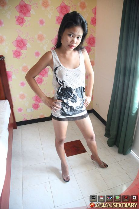 Asian Sex Diary: Amateur Asian babe Nhei strips and shows her hairy pussy up close