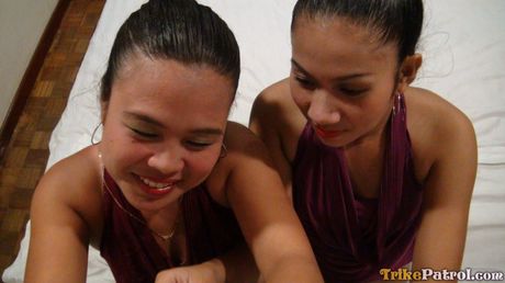 Trike Patrol: Amateur Asian teens Anne and Ivy share a stiff dick in a hot threesome