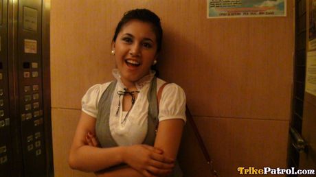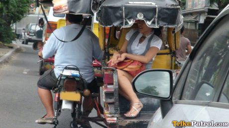 Trike Patrol: Asian amateur Ashley strips and gives a blowjob in a public place