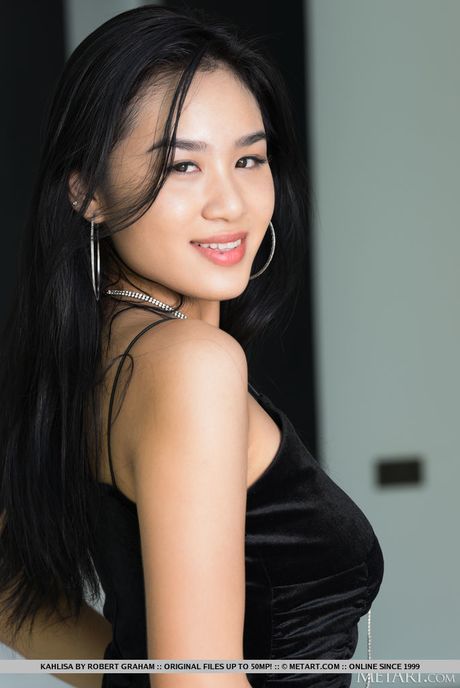 Met Art: Asian babe Kahlisa strips and unveils her hairy pussy up close
