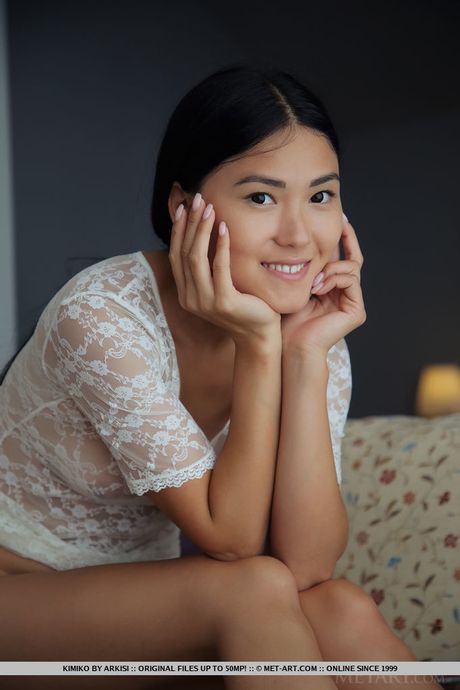 Met Art: Asian babe Kimiko demonstrates her tiny tits and spreads her pussy in a solo