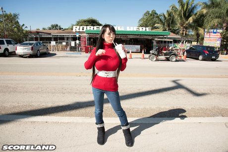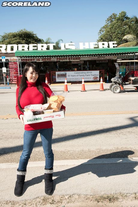 Score Land: Asian mom Hitomi unveils her amazing boobs and poses nude in the garden