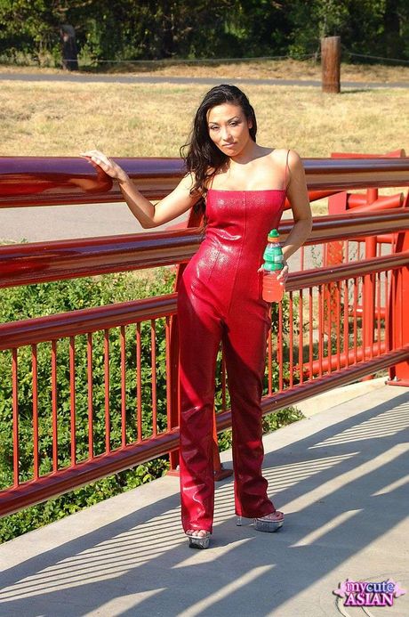 Thai Cuties: Asian mom Jenny Lee toying her big melons and pussy with a dildo outdoors