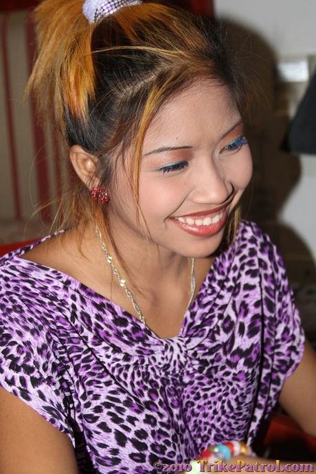 Trike Patrol: Asian teen Abbey strips and shows her tiny tits and ass in a solo