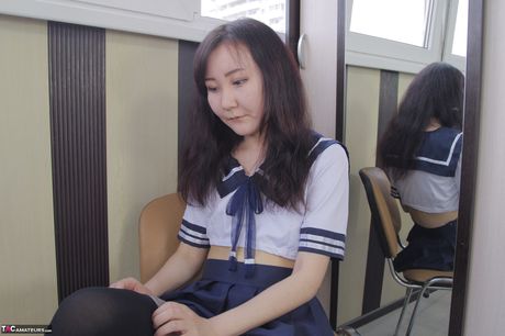 TAC Amateurs: Asian teen Akuma Loli strips to her stockings and shows her tattoos