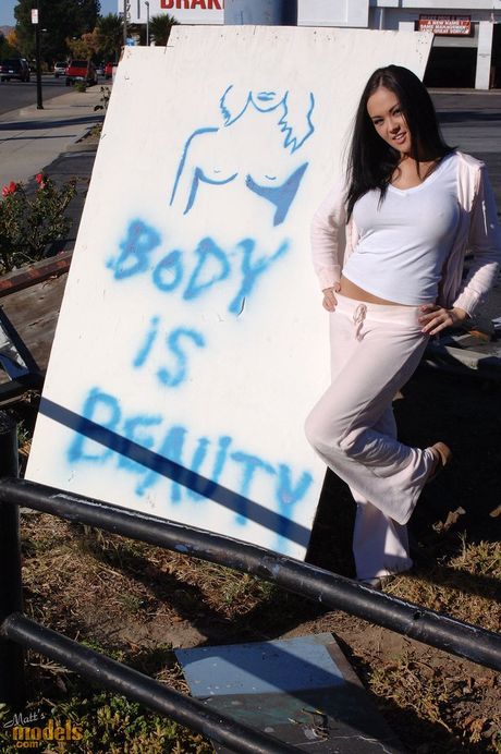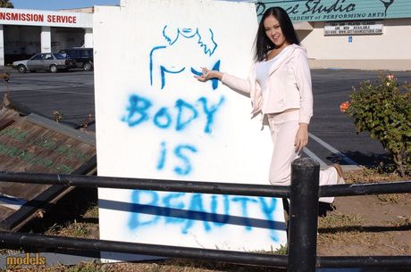 Matts Models: Asian teen Dee Lily strips and shows her amazing boobs and ass in the backyard