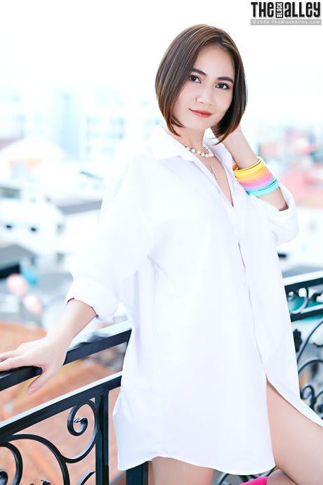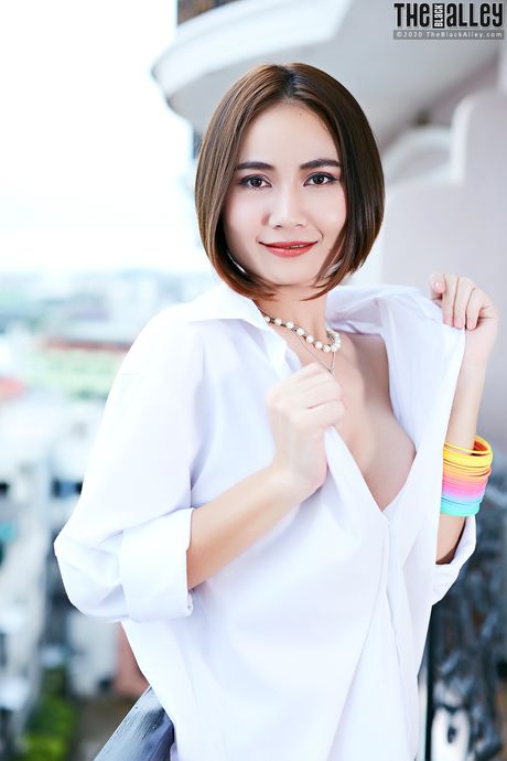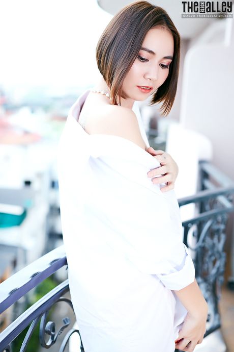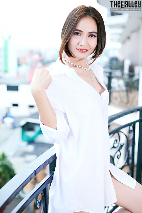 The Black Alley: Asian teen Ellie strips and shows her tiny tits and pink pussy
