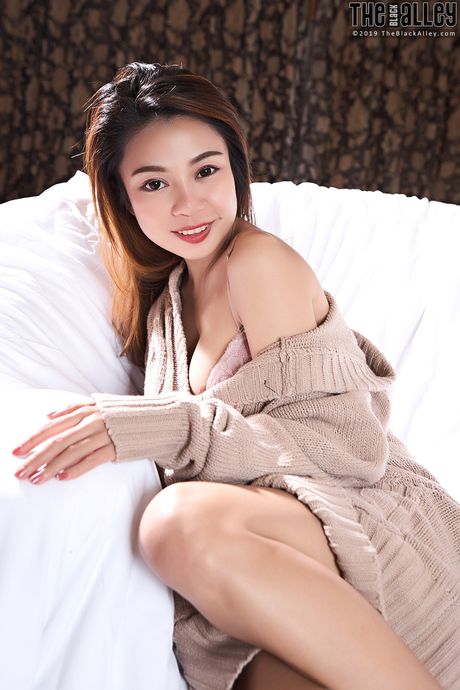 The Black Alley: Asian teen Juliet strips and shows her hairy pussy up close
