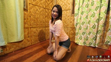 Hot Bunny Promotion: Asian teen Kayla strips and shows her tiny tits and pink pussy on the beach