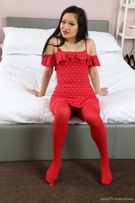 Only Tease: Asian teen Louisa Lu strips to her stockings and heels in a solo