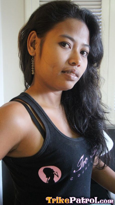 Trike Patrol: Asian teen Rose shows her tiny tits and hairy cunt in a solo