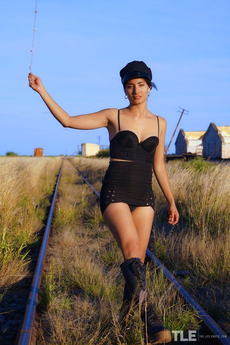 The Life Erotic: Asian teen Solange strips and poses nude in her boots in the outdoors