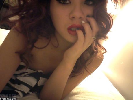 Pink Velvet Vault: Asian teen Sydney Mai shows her big juggs and toys her horny pussy