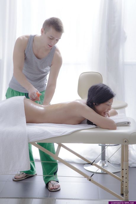 LBFM Addiction: Asian teen with a tiny tattoo gets her pussy licked and dicked by a masseuse