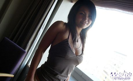 Idols 69: Attractive japanese hottie Asami in shorts posing outside