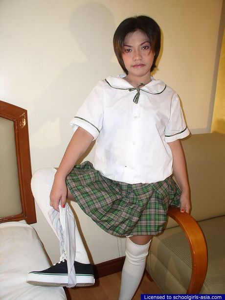 Schoolgirls Asia: Country girl dropping her school uniform to spread her ass cheeks