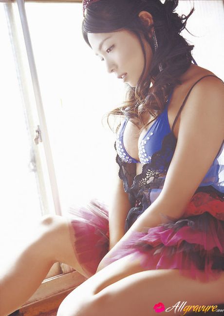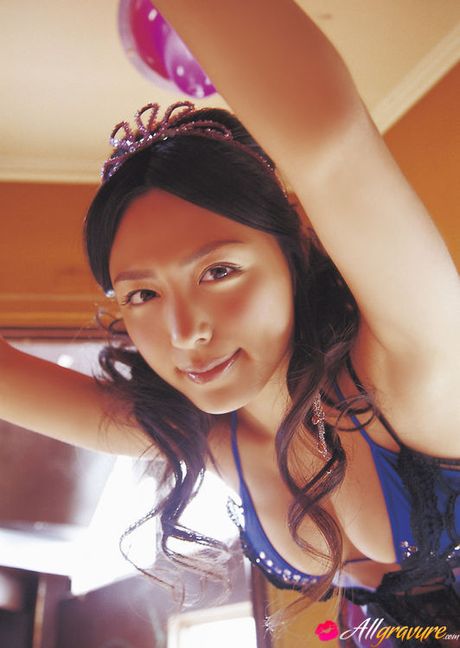 All Gravure: Cute asian babe in a purple bikini shows her big massive boobs
