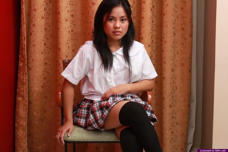 Little Brown Fucking Machines: Cute Gelda strips from her school uniform to pleasure her pussy with a giant sex toy
