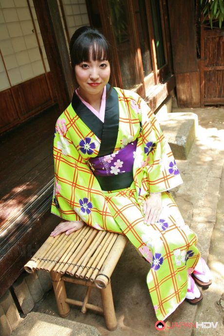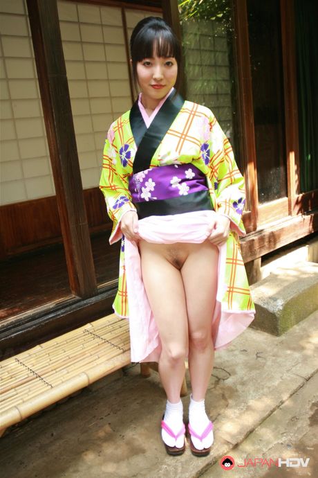 Japan HDV: Dark haired Japanese lady in a kimono showing her fine vagina