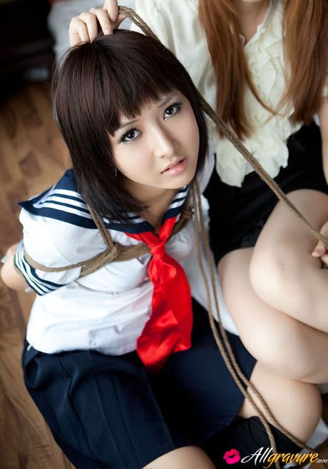 All Gravure: Dimdim Asian in uniform is tied in ropes by another sexy cupcake
