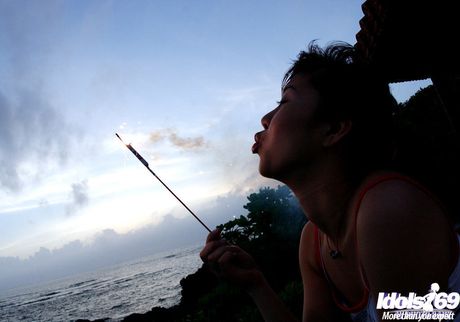 Idols 69: Glamorous japanese cutie Adusa Kyono exposes big tits and hot ass at beach