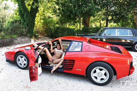 1 By Day: Hot asian cutie Danika showing big knockers and spreading her legs outside