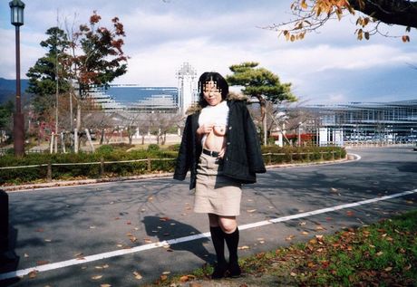 City Invasion: Japanese amateur chick strips and shows her perfect booty and tits in a public place