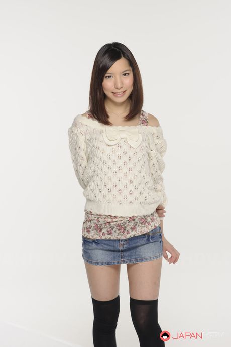 Japan HDV: Kurara Makise looks so hot in a white sweater and a very short skirt.