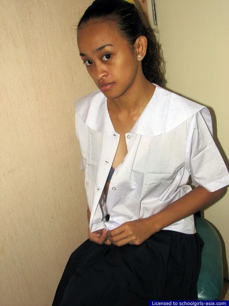 Schoolgirls Asia: Lewd college student dropping her school uniform and spreading her pussy lips