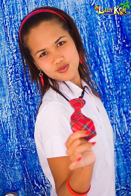 Lily Koh: Lily Koh in sexy Asian schoolgirl uniform strips