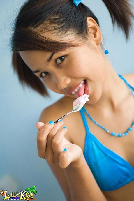 Lily Koh: Lily pours a milkshake over her slim Thai body