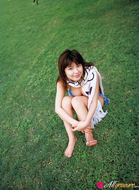 All Gravure: Miri Hanai Asian shows huge melons in tiny lingerie on grass