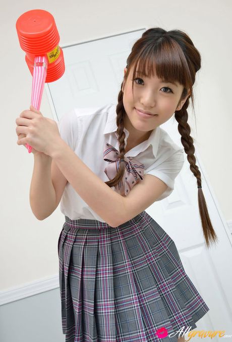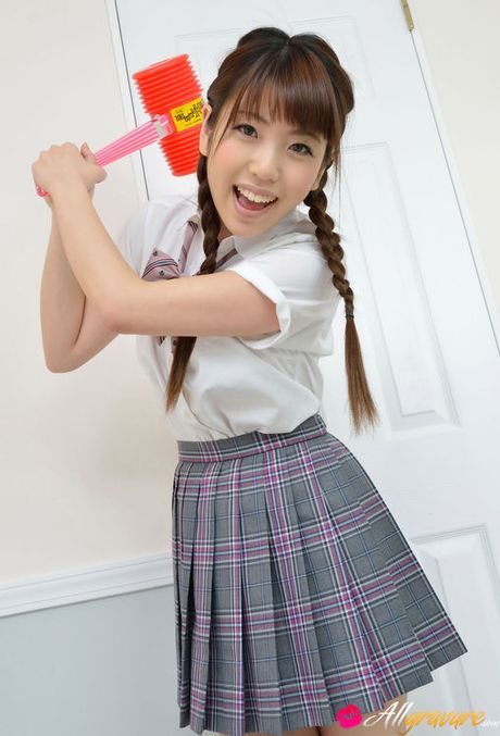 All Gravure: Mizuho Shiraishi Asian with uniform and pigtails plays like child