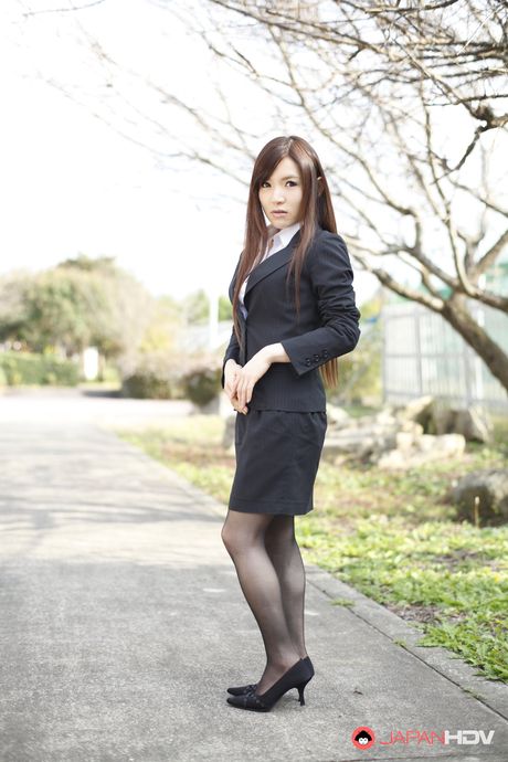 Japan HDV: Naughty Hitomi Tsukishiro in office outfit poses so sexy outdoors.