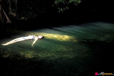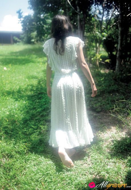 All Gravure: Neo Asian babe in white dress loves feeling her body in water