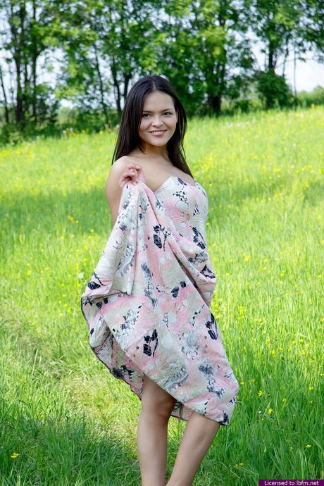 Little Brown Fucking Machines: Noon doesnt wear any panties and she lifts her dress outdoors to show her assets