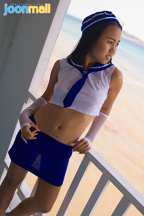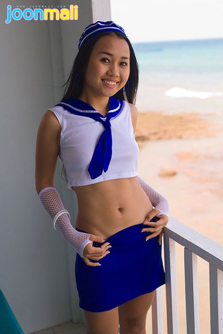 Joon Mali: Petite Asian bubble butt teen Joon Mali in flowered panties