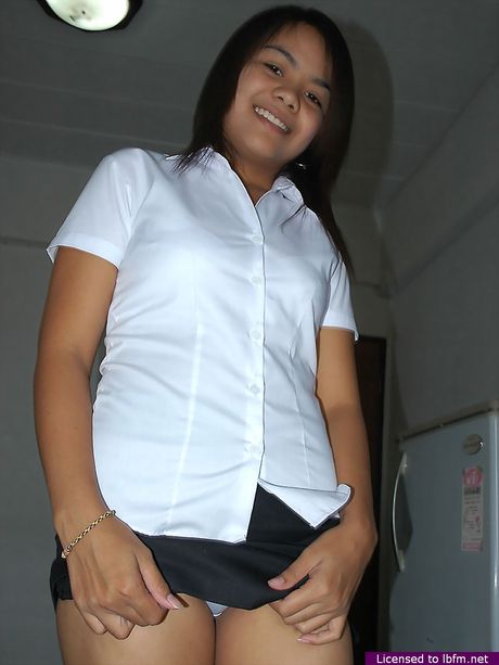 Little Brown Fucking Machines: Petite Thai schoolgirl stripping in a love hotel to flash her hairy muff