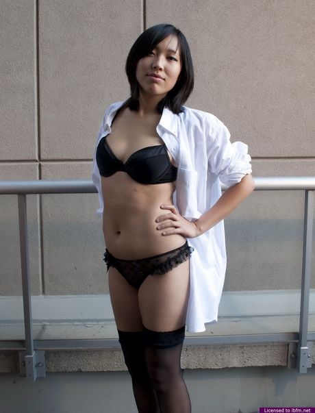 LBFM Addiction: Platinum Asian teen amateur girl strips and shows her shaved pussy outdoors