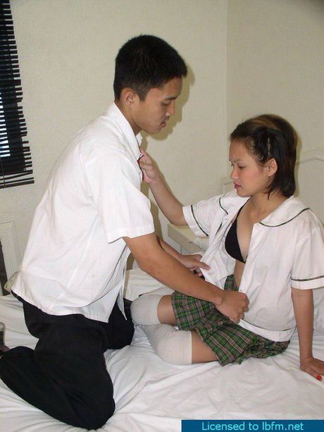 Little Brown Fucking Machines: Schoolgirl giving head to her boyfriend rewarded with a load of jizz