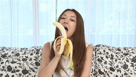 Ferame: Serina Hayakawa Asian learns on fruits how to suck cock very well