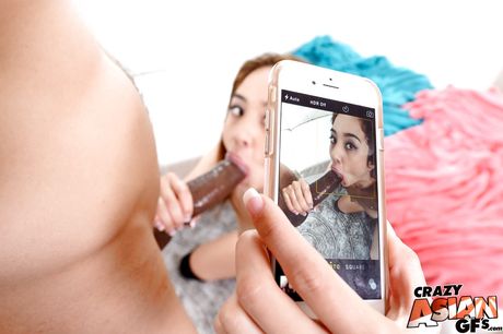 Crazy Asian GFs: Sexy asian redheaded amateur Mila Jade sucking deep big black rod and enjoys a cumshot on face