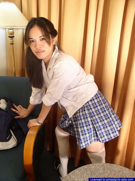 Schoolgirls Asia: Sexy female student stripping to show her bald pussy