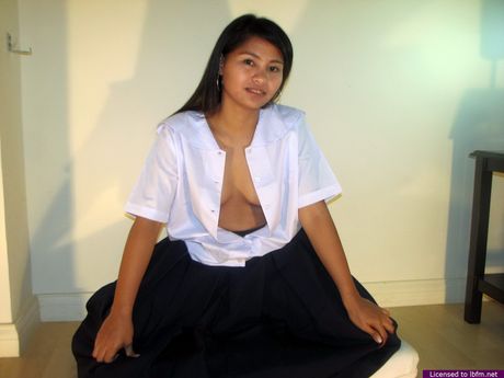 Barfine2cash: Skinny Asian schoolgirl strips off and unveils her tiny tits and pussy up close
