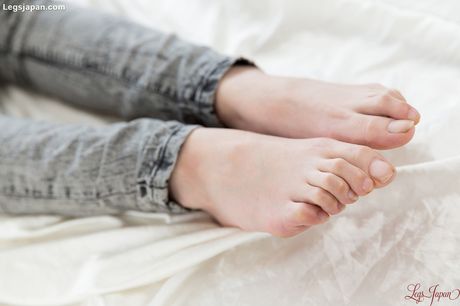 Legs Japan: Skinny Asian teen Kamimoto Rio strips and rides a big dick on a bed