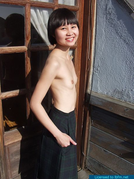 Little Brown Fucking Machines: Skinny cutie stripping outdoors and flashing her neat shaved slit