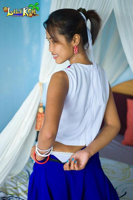 Lily Koh: Smiling Asian cheerleader flashes cute panties
