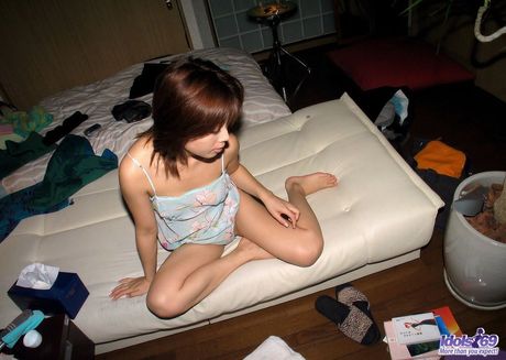 Idols 69: Superb Asian babe Tomomi toying her pussy with a dildo in a public place