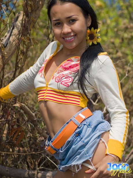 Joon Mali: Sweet Joon Mali lifts her skirt and flashes panties outside